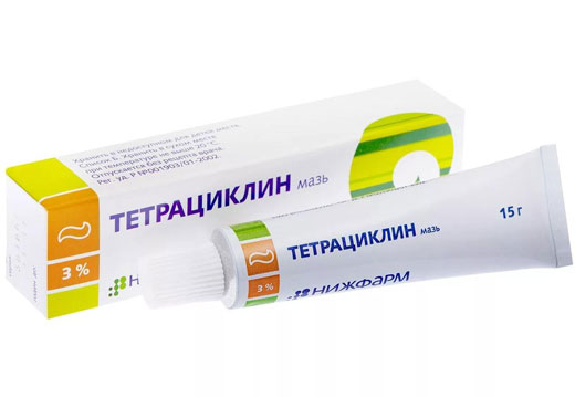 - Тетрациклиновая мазь имеет ряд преимуществ перед эритромициновой: не проникает глубоко в кожу, не попадает в кровь, плаценту, можно применять беременным. Препарат наносят на кожу 1-2 раза в сутки небольшим слоем, сверху наложить асептическую повязку. Возможные аллергические проявления.