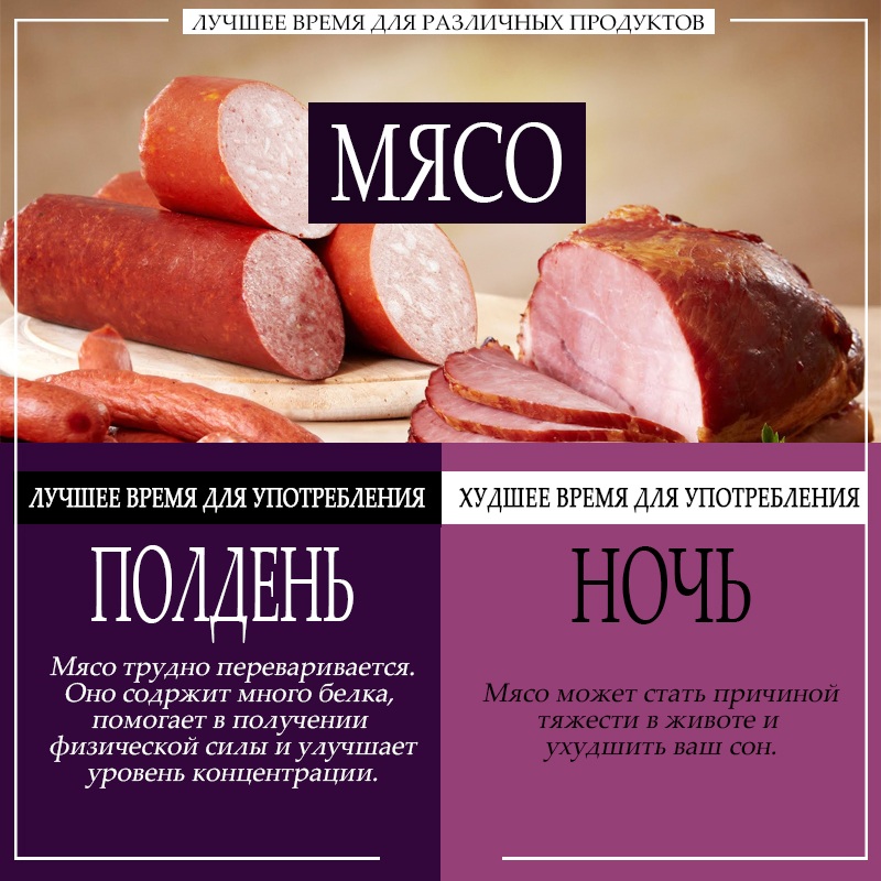Разные продукты требуют определенного количества времени на полноценное усвоение.