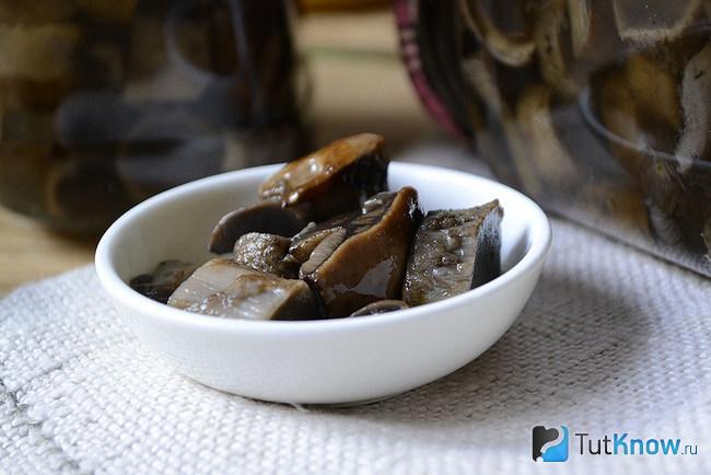 - Есть еще один способ, как мариновать подосиновики, при котором максимально сохранятся все полезные и вкусовые качества грибов. После того, как отваренные подосиновики остыли, их разрезать на пластинки и сложить в глубокую миску.