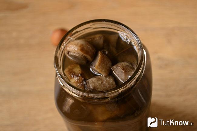 Раскладываем грибы по стерильным, хорошо прогретым банкам и закатываем. Обязательно укутайте их старым одеялом, чтоб они остывали постепенно.