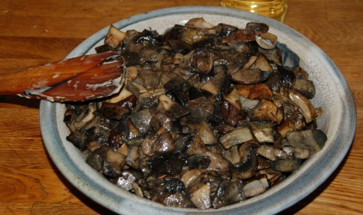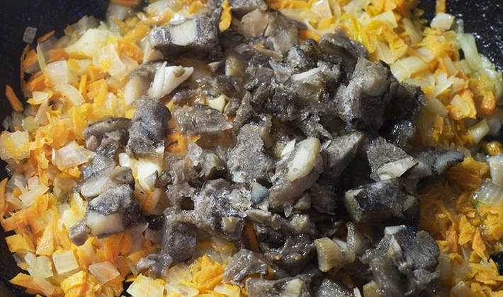 - Отваренные плодовые тела обжарить на сухой сковороде в течение 10 мин.