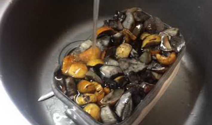 - Итак, для начала следует заняться непосредственно подосиновиками – промыть, удалить листья, землю и прочий лесной мусор и сразу же замочить в подсоленной уксусной воде буквально на десять минут.