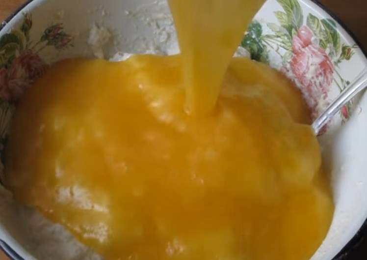 - Взбейте яйцо и также добавьте в массу. Влейте масло без запаха и хорошо перемешайте.