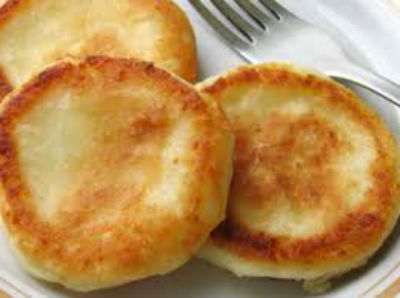 - Тем временем нагрейте сковороду и растопите в ней небольшой кусочек масла. При помощи ложки выкладывайте тесто и готовьте чибрики, подрумянивая их с обеих сторон.